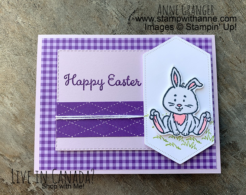 My card today uses the following colour combinations: Purple Posy, Gorgeous Grape and Whisper White. This colour scheme says “Spring and Easter to me!”