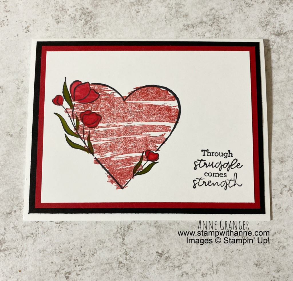 Today, I’m sharing one of the projects that we made in our Monday Night Crafting Session #39 back in November. In this stamping session, we focus onto Product Give Back Stamp Set called ” Strong of Heart” This is Stampin’ Up! product give back stamp set and each stamp set sold here in Canada, $4 will be donated to the Cardiac Unit at St. Joseph’s Hospital in London Ontario. This program is very near and dear to my family and one that we support yearly with fundraisers.
