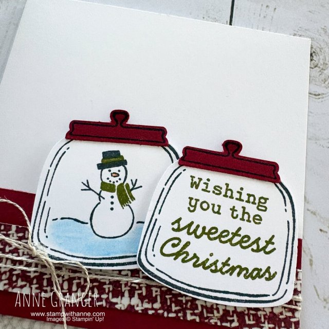 I’m a huge fan of snowman and when I saw this adorable snowman, I knew that I have to had the Jar of Joy stamp set. Plus, it coornidates with the Sweet Jar Builder Punch.
